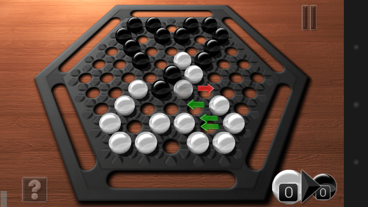 Empuja una, dos o tres canicas tuyas a la vez. Si formas una línea que tenga más canicas que la de tu oponente, puedes empujarle fuera de los límites del tablero. ¡Empuja a tu oponente fuera del tablero antes de que lo haga él!